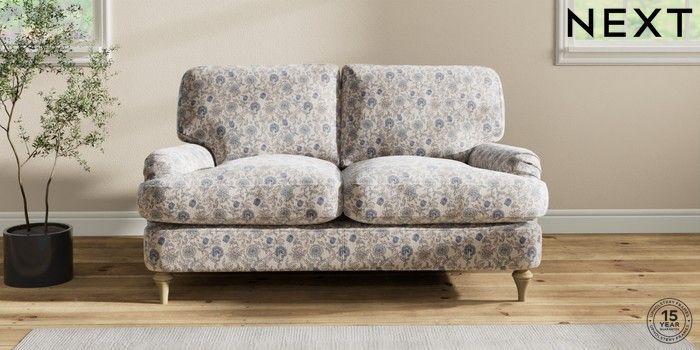 7.2.6 Buy Sadie Deep Relaxed Sit 2 Seater Small Sofa Relaxed Linen Look Print Woodblock Floral Blue High Slim Turned - Light from the Next UK online shop Click here to use our accessible website