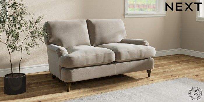 7.0.3 Buy Sadie Deep Relaxed Sit 2 Seater Small Sofa Ripple Chenille Light Natural High Slim Turned - Mid from the Next UK online shop Click here to use our accessible website