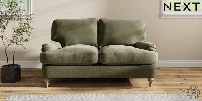 6.12.1 Buy Sadie Deep Relaxed Sit 2 Seater Small Sofa Ripple Chenille Mid Moss Green High Slim Turned - Light from the Next UK online shop Click here to use our accessible website