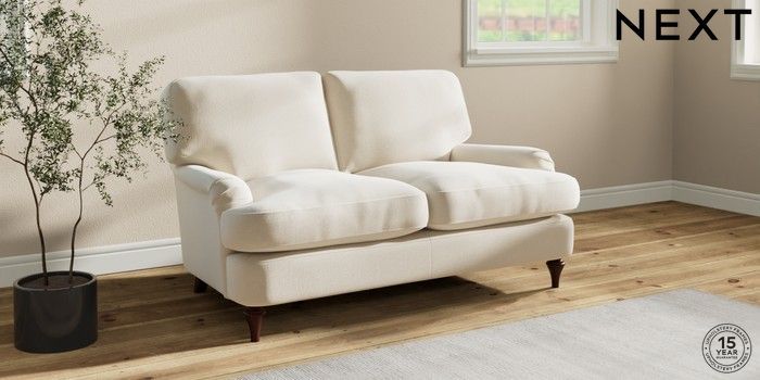 7.0.3 Buy Sadie Deep Relaxed Sit 2 Seater Small Sofa Ripple Chenille Oyster High Slim Turned - Dark Brown from the Next UK online shop Click here to use our accessible website