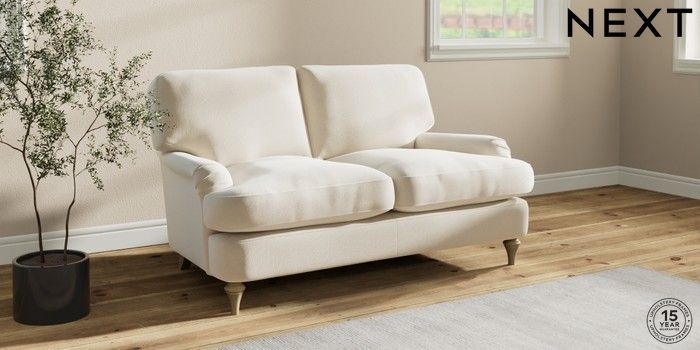 7.0.3 Buy Sadie Deep Relaxed Sit 2 Seater Small Sofa Ripple Chenille Oyster High Slim Turned - Light from the Next UK online shop Click here to use our accessible website