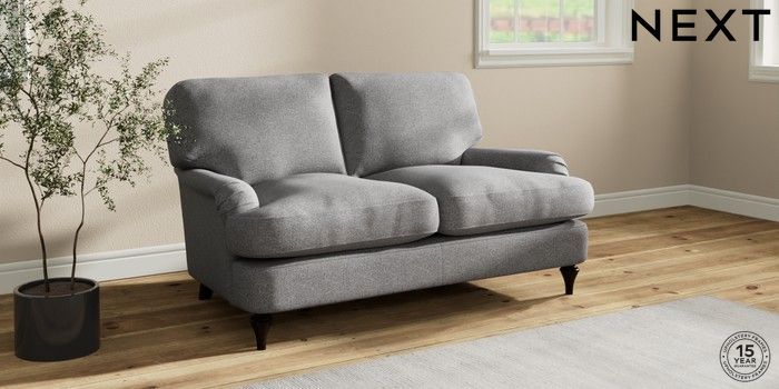 7.0.3 Buy Sadie Deep Relaxed Sit 2 Seater Small Sofa Studio Chenille Mid Grey High Slim Turned - Dark from the Next UK online shop Click here to use our accessible website