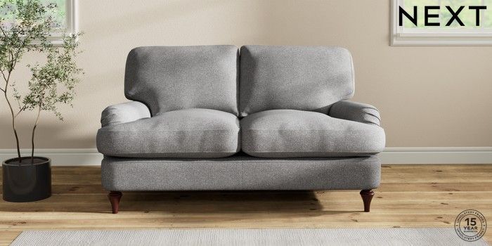 6.12.1 Buy Sadie Deep Relaxed Sit 2 Seater Small Sofa Studio Chenille Mid Grey High Slim Turned - Dark Brown from the Next UK online shop Click here to use our accessible website