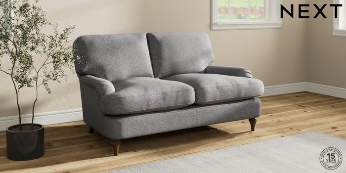 7.0.3 Buy Sadie Deep Relaxed Sit 2 Seater Small Sofa Studio Chenille Mid Grey High Slim Turned - Mid from the Next UK online shop Click here to use our accessible website