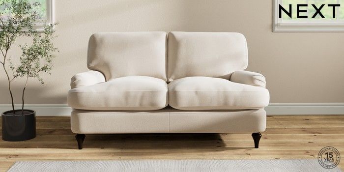 6.12.1 Buy Sadie Deep Relaxed Sit 2 Seater Small Sofa Studio Chenille Oyster High Slim Turned - Dark from the Next UK online shop Click here to use our accessible website
