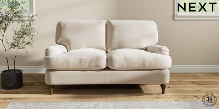 6.12.1 Buy Sadie Deep Relaxed Sit 2 Seater Small Sofa Studio Chenille Oyster High Slim Turned - Mid from the Next UK online shop Click here to use our accessible website