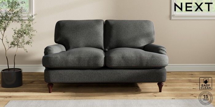 6.12.1 Buy Sadie Deep Relaxed Sit 2 Seater Small Sofa Tweedy Blend Easy Clean Charcoal Grey High Slim Turned - Dark Brown from the Next UK online shop Click here to use our accessible website