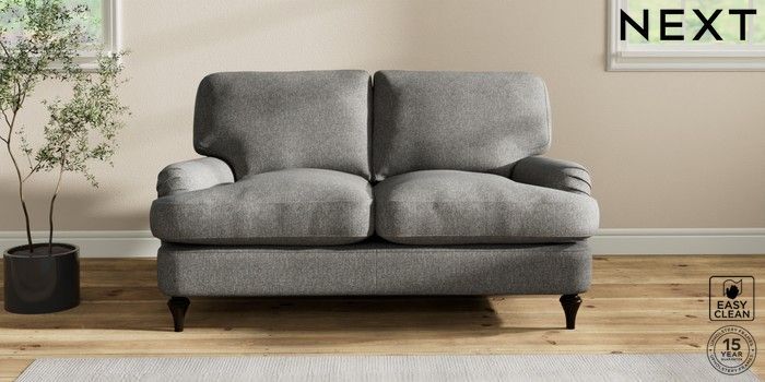 6.12.1 Buy Sadie Deep Relaxed Sit 2 Seater Small Sofa Tweedy Blend Easy Clean Dark Grey High Slim Turned - Dark from the Next UK online shop Click here to use our accessible website