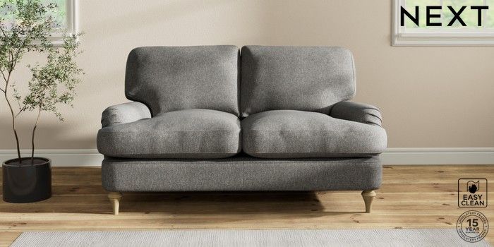 6.12.1 Buy Sadie Deep Relaxed Sit 2 Seater Small Sofa Tweedy Blend Easy Clean Dark Grey High Slim Turned - Light from the Next UK online shop Click here to use our accessible website