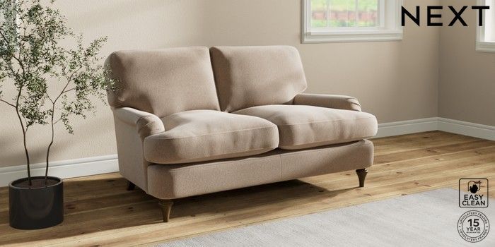 7.0.3 Buy Sadie Deep Relaxed Sit 2 Seater Small Sofa Tweedy Blend Easy Clean Light Dove Natural High Slim Turned - Mid from the Next UK online shop Click here to use our accessible website