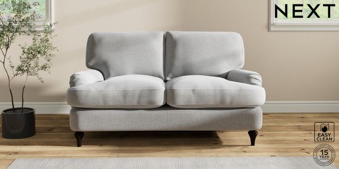 6.12.1 Buy Sadie Deep Relaxed Sit 2 Seater Small Sofa Tweedy Blend Easy Clean Light Silver Grey High Slim Turned - Dark from the Next UK online shop Click here to use our accessible website