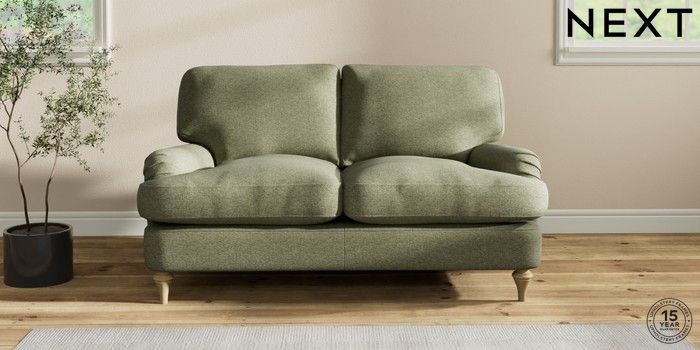 6.12.1 Buy Sadie Deep Relaxed Sit 2 Seater Small Sofa Tweedy Chenille Mid Moss Green High Slim Turned - Light from the Next UK online shop Click here to use our accessible website