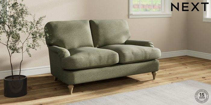 7.0.3 Buy Sadie Deep Relaxed Sit 2 Seater Small Sofa Tweedy Chenille Mid Moss Green High Slim Turned - Light from the Next UK online shop Click here to use our accessible website