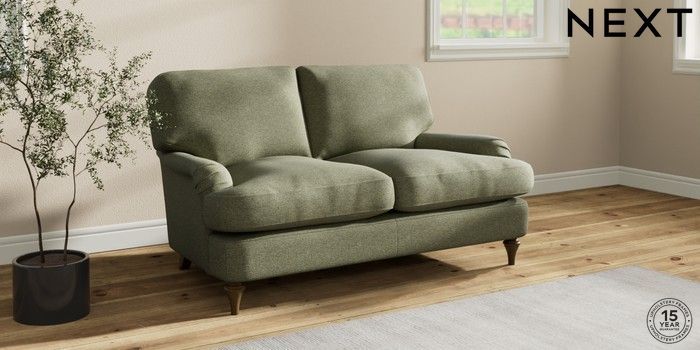 7.0.3 Buy Sadie Deep Relaxed Sit 2 Seater Small Sofa Tweedy Chenille Mid Moss Green High Slim Turned - Mid from the Next UK online shop Click here to use our accessible website