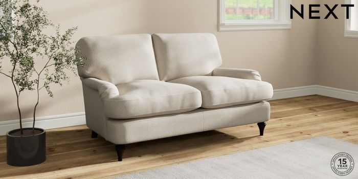 7.0.3 Buy Sadie Deep Relaxed Sit 2 Seater Small Sofa Tweedy Chenille Oyster High Slim Turned - Dark from the Next UK online shop Click here to use our accessible website
