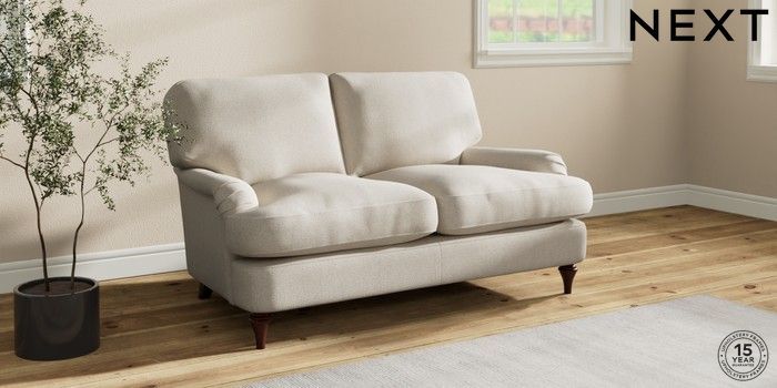 7.0.3 Buy Sadie Deep Relaxed Sit 2 Seater Small Sofa Tweedy Chenille Oyster High Slim Turned - Dark Brown from the Next UK online shop Click here to use our accessible website