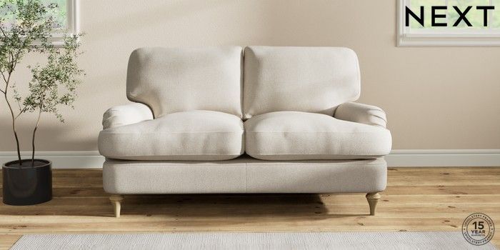 6.12.1 Buy Sadie Deep Relaxed Sit 2 Seater Small Sofa Tweedy Chenille Oyster High Slim Turned - Light from the Next UK online shop Click here to use our accessible website