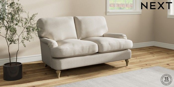 7.0.3 Buy Sadie Deep Relaxed Sit 2 Seater Small Sofa Tweedy Chenille Oyster High Slim Turned - Light from the Next UK online shop Click here to use our accessible website