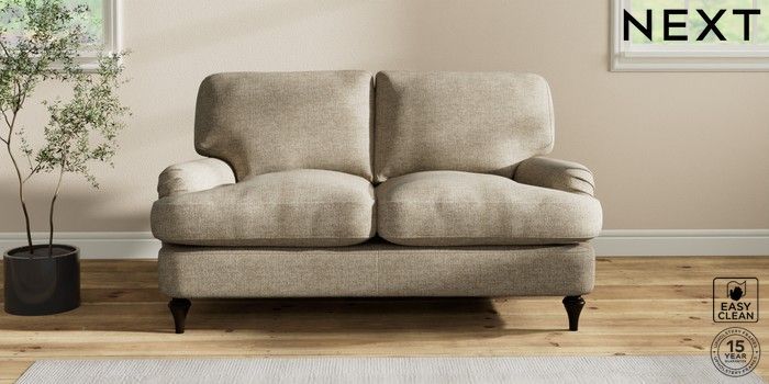 6.12.1 Buy Sadie Deep Relaxed Sit 2 Seater Small Sofa Woven Chenille Easy Clean Mid Natural High Slim Turned - Dark from the Next UK online shop Click here to use our accessible website