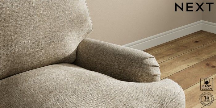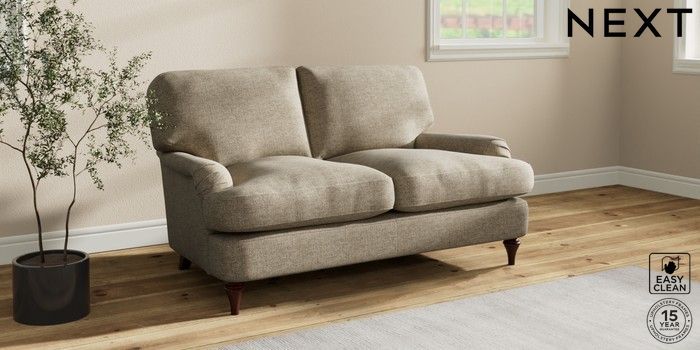 7.0.3 Buy Sadie Deep Relaxed Sit 2 Seater Small Sofa Woven Chenille Easy Clean Mid Natural High Slim Turned - Dark Brown from the Next UK online shop Click here to use our accessible website
