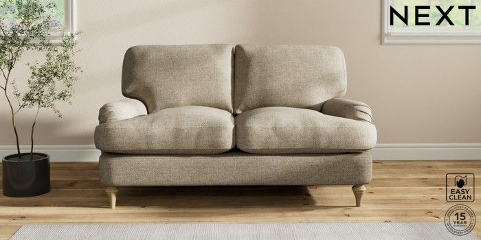 6.12.1 Buy Sadie Deep Relaxed Sit 2 Seater Small Sofa Woven Chenille Easy Clean Mid Natural High Slim Turned - Light from the Next UK online shop Click here to use our accessible website