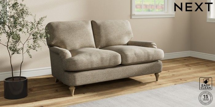7.0.3 Buy Sadie Deep Relaxed Sit 2 Seater Small Sofa Woven Chenille Easy Clean Mid Natural High Slim Turned - Light from the Next UK online shop Click here to use our accessible website
