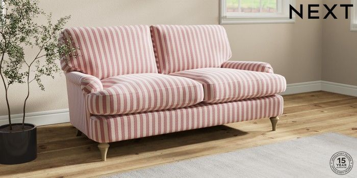 7.0.3 Buy Sadie Deep Relaxed Sit 2 Seater Sofa Bold Chenille Stripe Dark Pink High Slim Turned - Light from the Next UK online shop Click here to use our accessible website