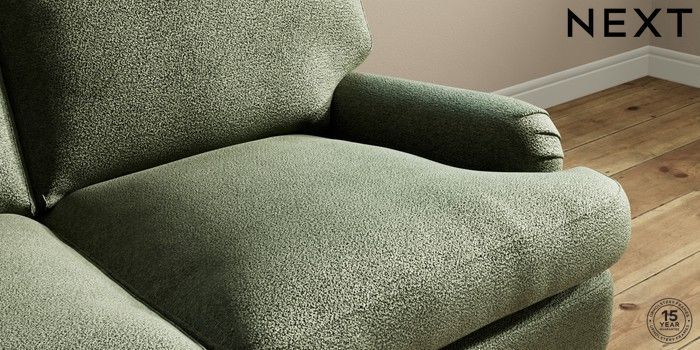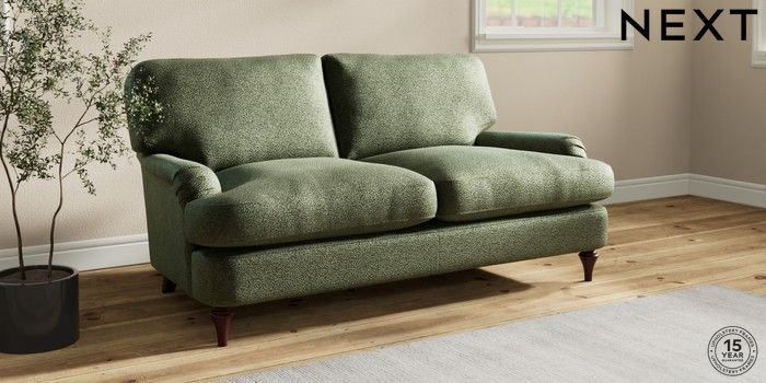 7.0.3 Buy Sadie Deep Relaxed Sit 2 Seater Sofa Boucle Chenille Dark Moss Green High Slim Turned - Dark Brown from the Next UK online shop Click here to use our accessible website
