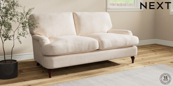 7.0.3 Buy Sadie Deep Relaxed Sit 2 Seater Sofa Boucle Chenille Oyster High Slim Turned - Dark Brown from the Next UK online shop Click here to use our accessible website