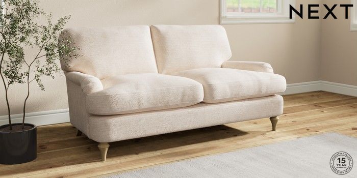 7.0.3 Buy Sadie Deep Relaxed Sit 2 Seater Sofa Boucle Chenille Oyster High Slim Turned - Light from the Next UK online shop Click here to use our accessible website