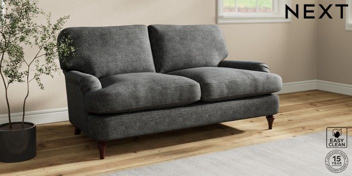 7.0.3 Buy Sadie Deep Relaxed Sit 2 Seater Sofa Boucle Weave Easy Clean Charcoal Grey High Slim Turned - Dark Brown from the Next UK online shop Click here to use our accessible website