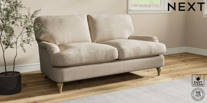 7.0.3 Buy Sadie Deep Relaxed Sit 2 Seater Sofa Boucle Weave Easy Clean Dark Natural High Slim Turned - Light from the Next UK online shop Click here to use our accessible website
