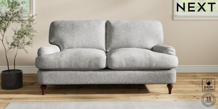6.12.1 Buy Sadie Deep Relaxed Sit 2 Seater Sofa Chunky Boucle Easy Clean Light Grey High Slim Turned - Dark Brown from the Next UK online shop Click here to use our accessible website