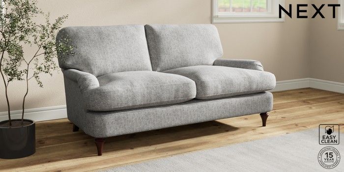 7.0.3 Buy Sadie Deep Relaxed Sit 2 Seater Sofa Chunky Boucle Easy Clean Light Grey High Slim Turned - Dark Brown from the Next UK online shop Click here to use our accessible website