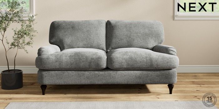 6.12.1 Buy Sadie Deep Relaxed Sit 2 Seater Sofa Chunky Chenille Dark Grey High Slim Turned - Dark from the Next UK online shop Click here to use our accessible website