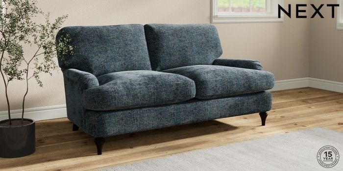 7.0.3 Buy Sadie Deep Relaxed Sit 2 Seater Sofa Chunky Chenille Dark Navy Blue High Slim Turned - Dark from the Next UK online shop Click here to use our accessible website