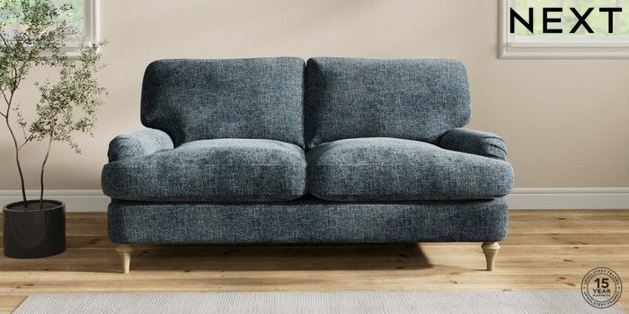 6.12.1 Buy Sadie Deep Relaxed Sit 2 Seater Sofa Chunky Chenille Dark Navy Blue High Slim Turned - Light from the Next UK online shop Click here to use our accessible website