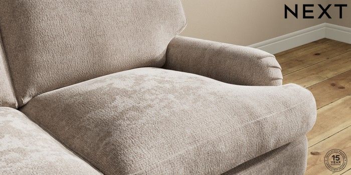 7.0.3 Buy Sadie Deep Relaxed Sit 2 Seater Sofa Chunky Chenille Light Dove High Slim Turned - Dark Brown from the Next UK online shop Click here to use our accessible website