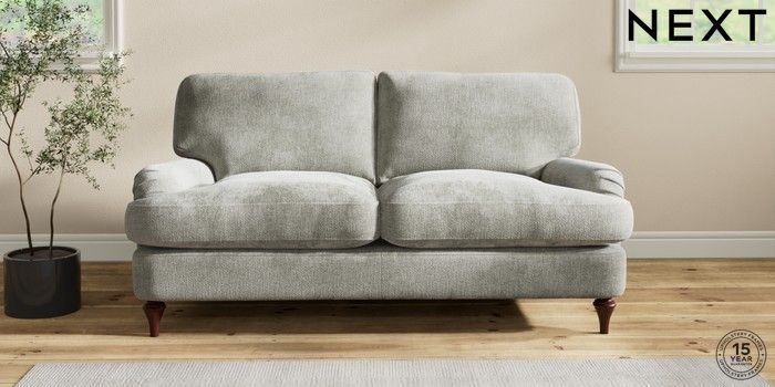 6.12.1 Buy Sadie Deep Relaxed Sit 2 Seater Sofa Chunky Chenille Light Grey High Slim Turned - Dark Brown from the Next UK online shop Click here to use our accessible website