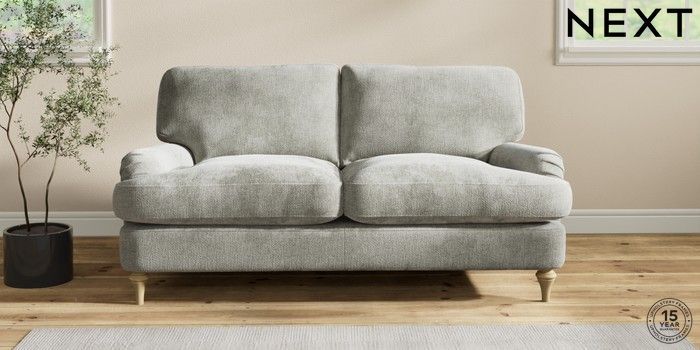 6.12.1 Buy Sadie Deep Relaxed Sit 2 Seater Sofa Chunky Chenille Light Grey High Slim Turned - Light from the Next UK online shop Click here to use our accessible website