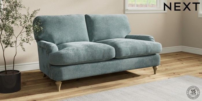7.0.3 Buy Sadie Deep Relaxed Sit 2 Seater Sofa Chunky Chenille Light Teal Green High Slim Turned - Light from the Next UK online shop Click here to use our accessible website
