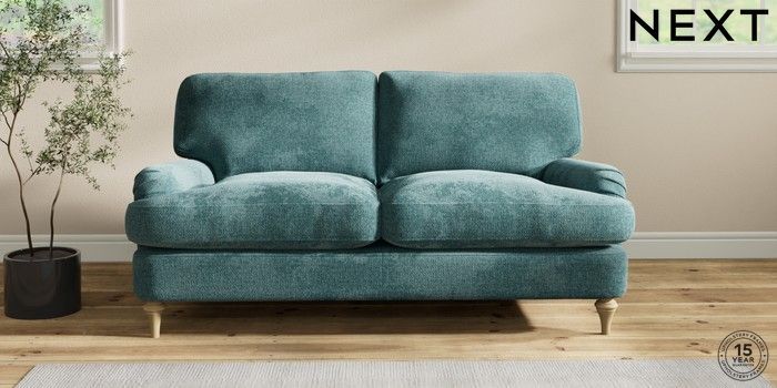 6.12.1 Buy Sadie Deep Relaxed Sit 2 Seater Sofa Chunky Chenille Mid Teal Green High Slim Turned - Light from the Next UK online shop Click here to use our accessible website