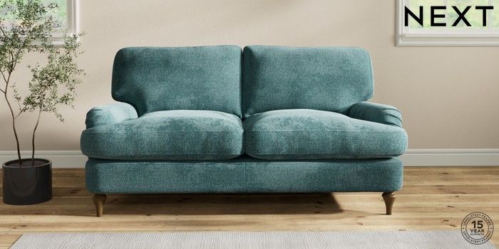 6.12.1 Buy Sadie Deep Relaxed Sit 2 Seater Sofa Chunky Chenille Mid Teal Green High Slim Turned - Mid from the Next UK online shop Click here to use our accessible website