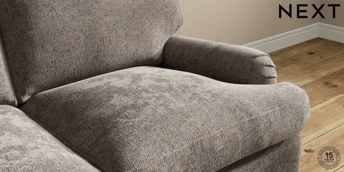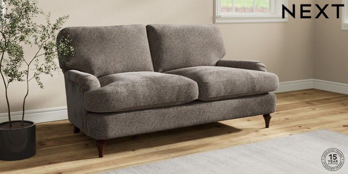 7.0.3 Buy Sadie Deep Relaxed Sit 2 Seater Sofa Chunky Chenille Mink Brown High Slim Turned - Dark Brown from the Next UK online shop Click here to use our accessible website