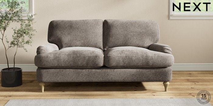 6.12.1 Buy Sadie Deep Relaxed Sit 2 Seater Sofa Chunky Chenille Mink Brown High Slim Turned - Light from the Next UK online shop Click here to use our accessible website
