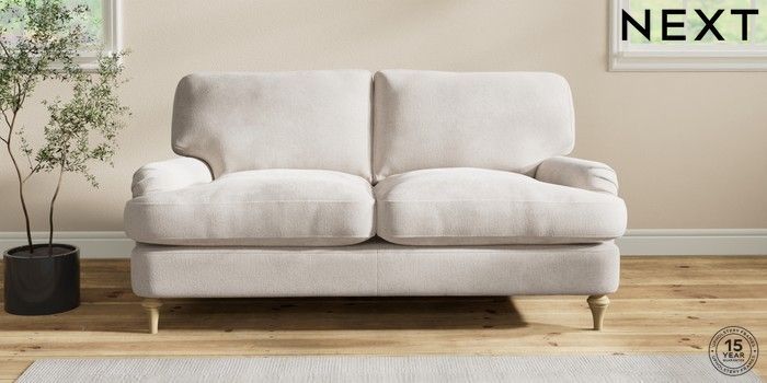 6.12.1 Buy Sadie Deep Relaxed Sit 2 Seater Sofa Chunky Chenille Oyster High Slim Turned - Light from the Next UK online shop Click here to use our accessible website