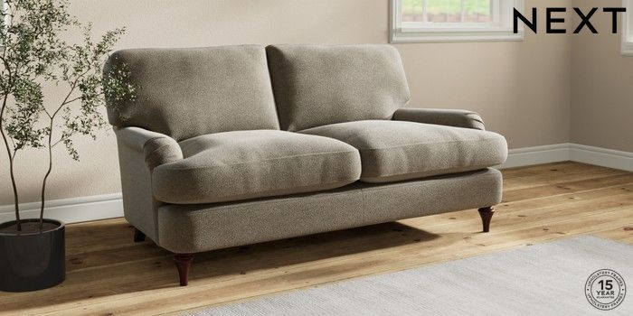 7.0.3 Buy Sadie Deep Relaxed Sit 2 Seater Sofa Chunky Marl Light Olive Green High Slim Turned - Dark Brown from the Next UK online shop Click here to use our accessible website