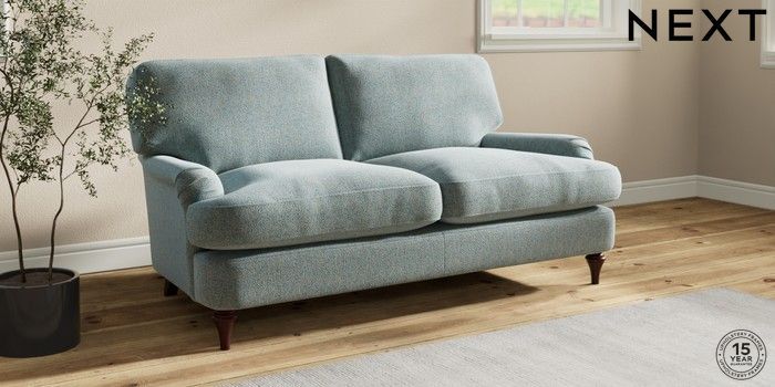 7.0.3 Buy Sadie Deep Relaxed Sit 2 Seater Sofa Chunky Marl Mid Blue High Slim Turned - Dark Brown from the Next UK online shop Click here to use our accessible website
