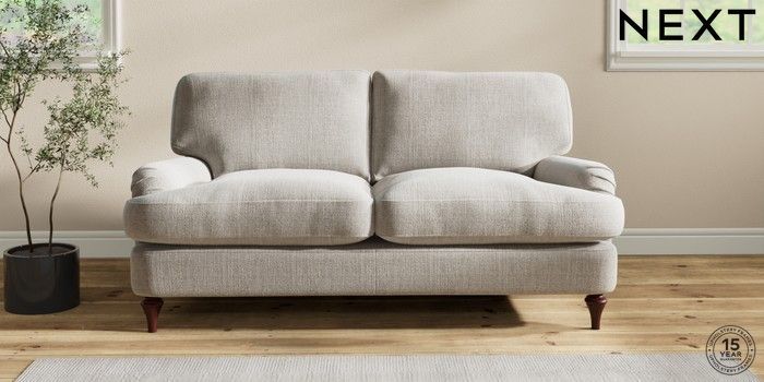 6.12.1 Buy Sadie Deep Relaxed Sit 2 Seater Sofa Chunky Weave Dove Grey High Slim Turned - Dark Brown from the Next UK online shop Click here to use our accessible website
