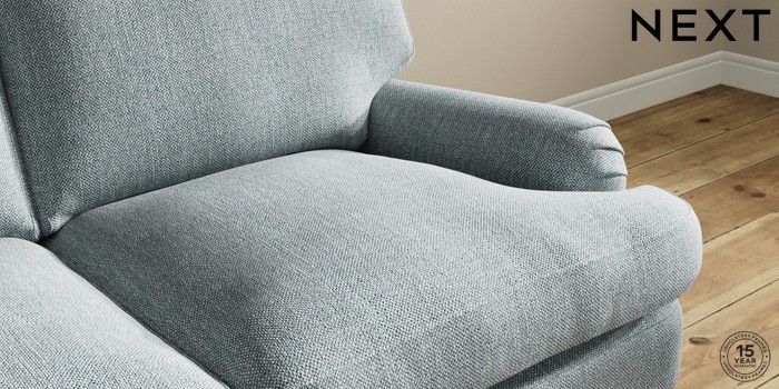 7.0.3 Buy Sadie Deep Relaxed Sit 2 Seater Sofa Chunky Weave Mid Blue High Slim Turned - Dark Brown from the Next UK online shop Click here to use our accessible website